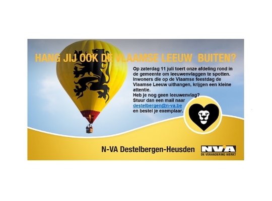 Volgende maand, 11 juli, hangen we weer onze leeuwenvlag buiten. Wie dit doet ontvangt naar jaarlijkse gewoonte een geel roosje. Nog geen leeuwenvlag in huis? Mail even naar destelbergen [at] n-va.be en we brengen dit gauw en GRATIS in orde.