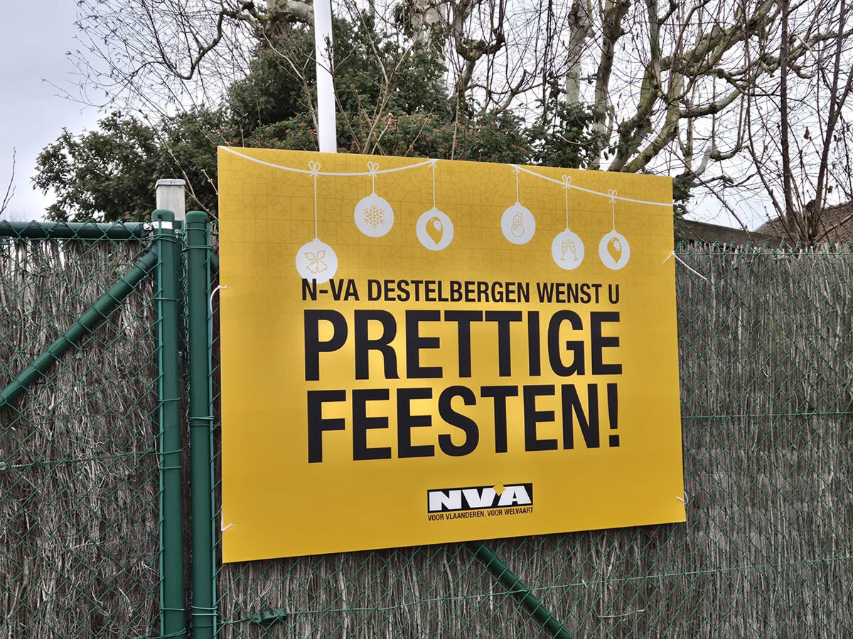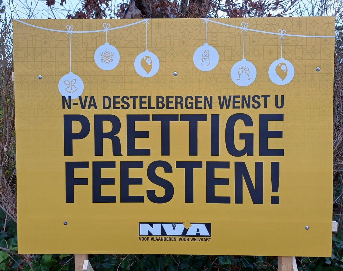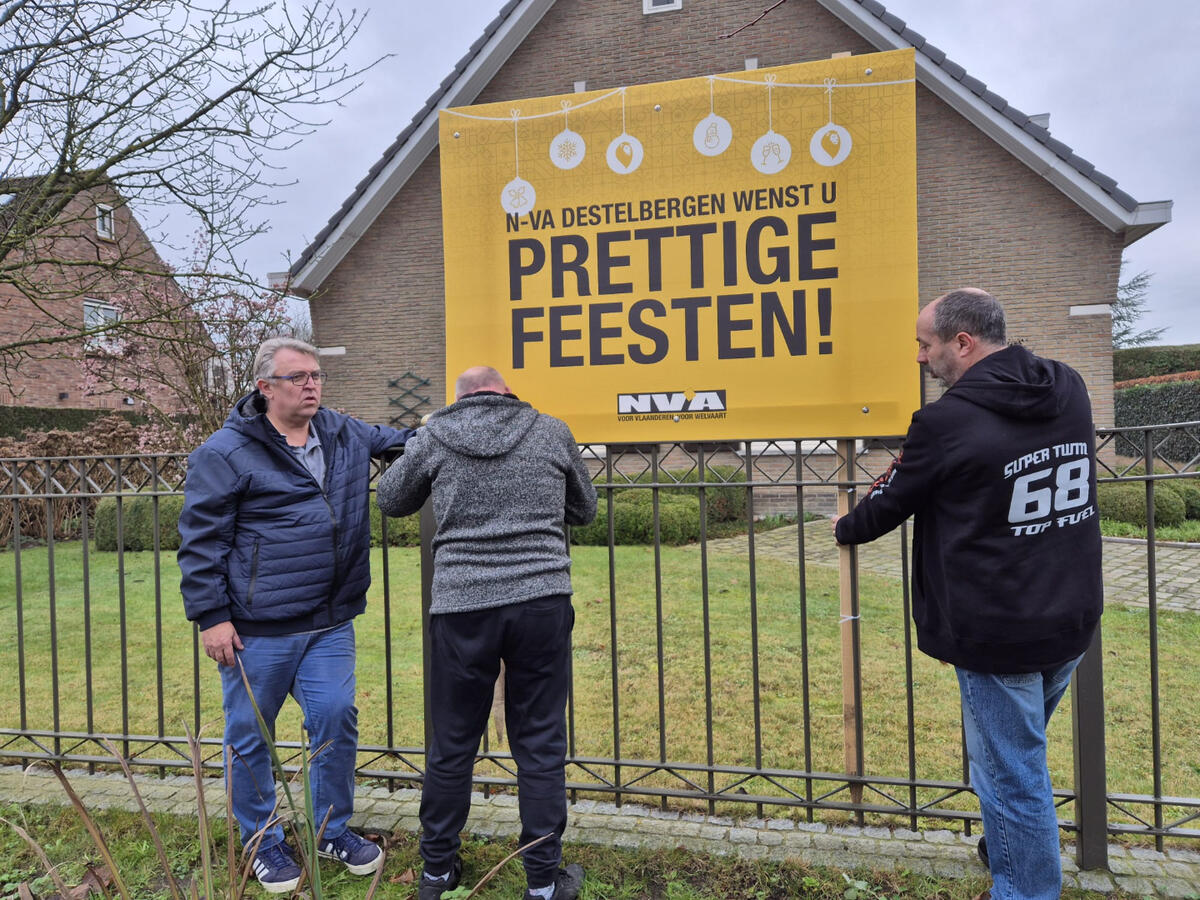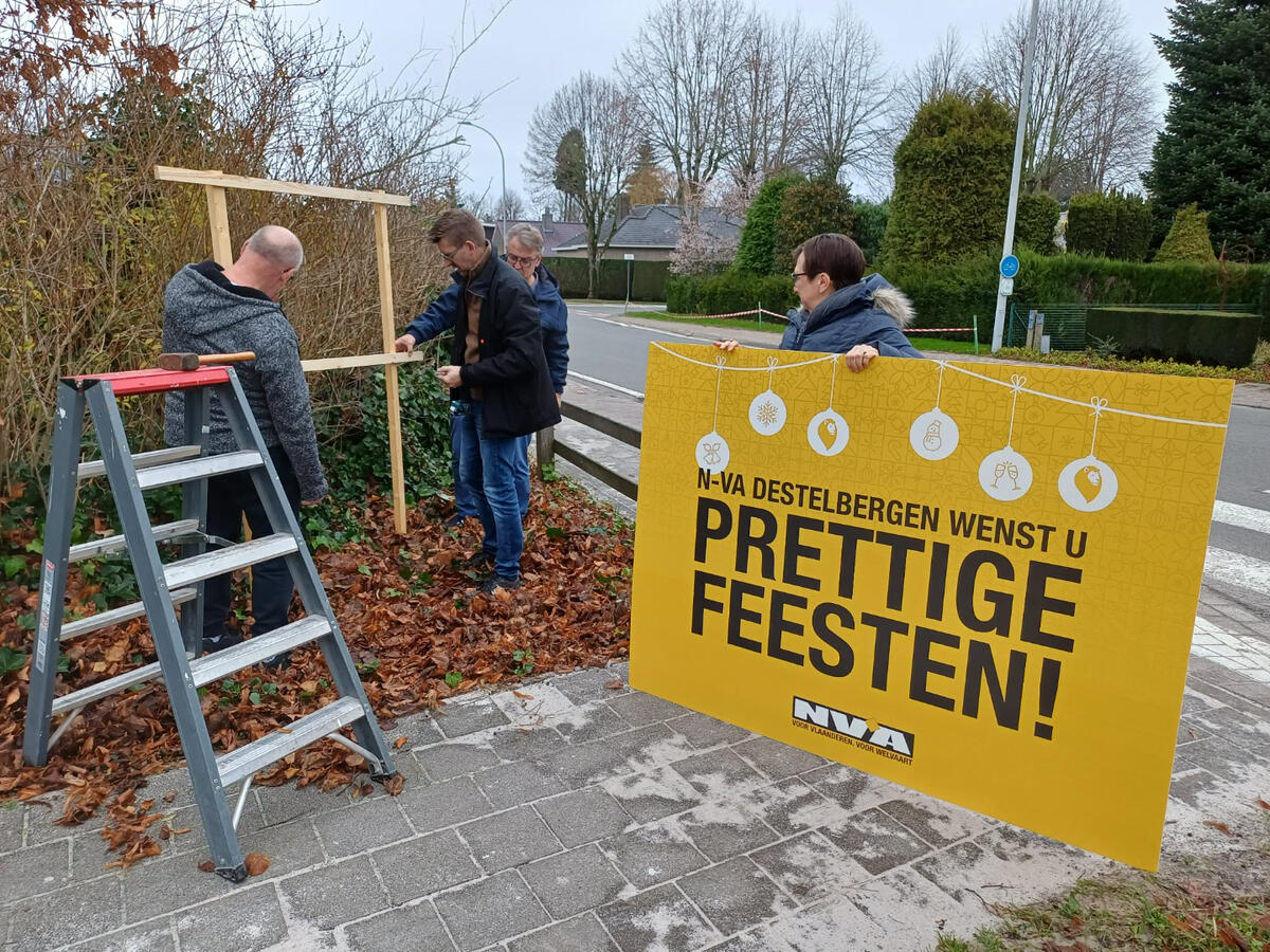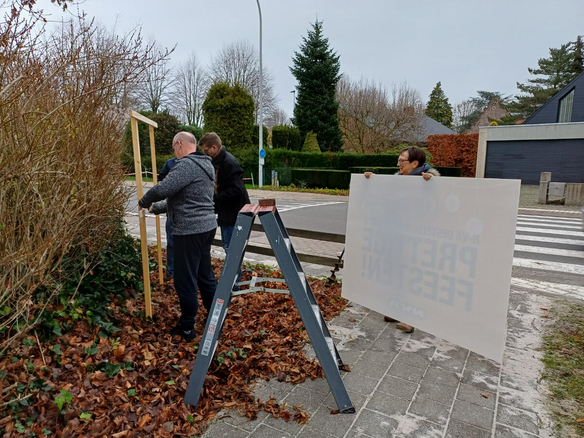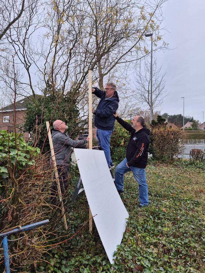 Wat is er leuker dan je gemeente fijne feestdagen wensen. Zoals elk jaar ging een ploegje enthousiastelingen de borden plaatsen, met lachen en hilariteit natuurlijk.