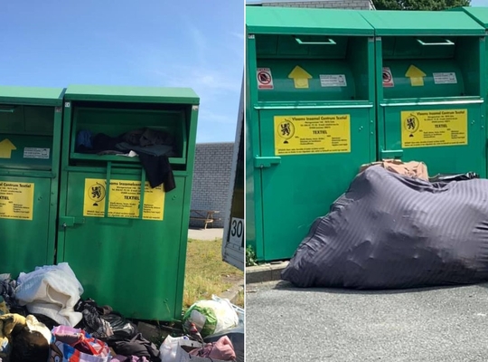 Vooral de kledingcontainers trekken sluikstorten aan. Als die op privéterrein geplaatst worden, is er enkel een goedkeuring nodig van OVAM ( openbare Vlaamse afvalstoffenmaatschappij) en is er geen aanvraag nodig bij de gemeente. Indien deze containers geplaats worden op openbaar domein, zoals bijvoorbeeld op het pleintje ter hoogte van het kruispunt Dendermondesteenweg - Admiraalstraat kan de gemeente gerichter optreden. Er wordt bekeken hoe er actie kan ondernomen worden. De firma die de containers plaatst, zit zelf verveeld met de evolutie van het sluikstorten.